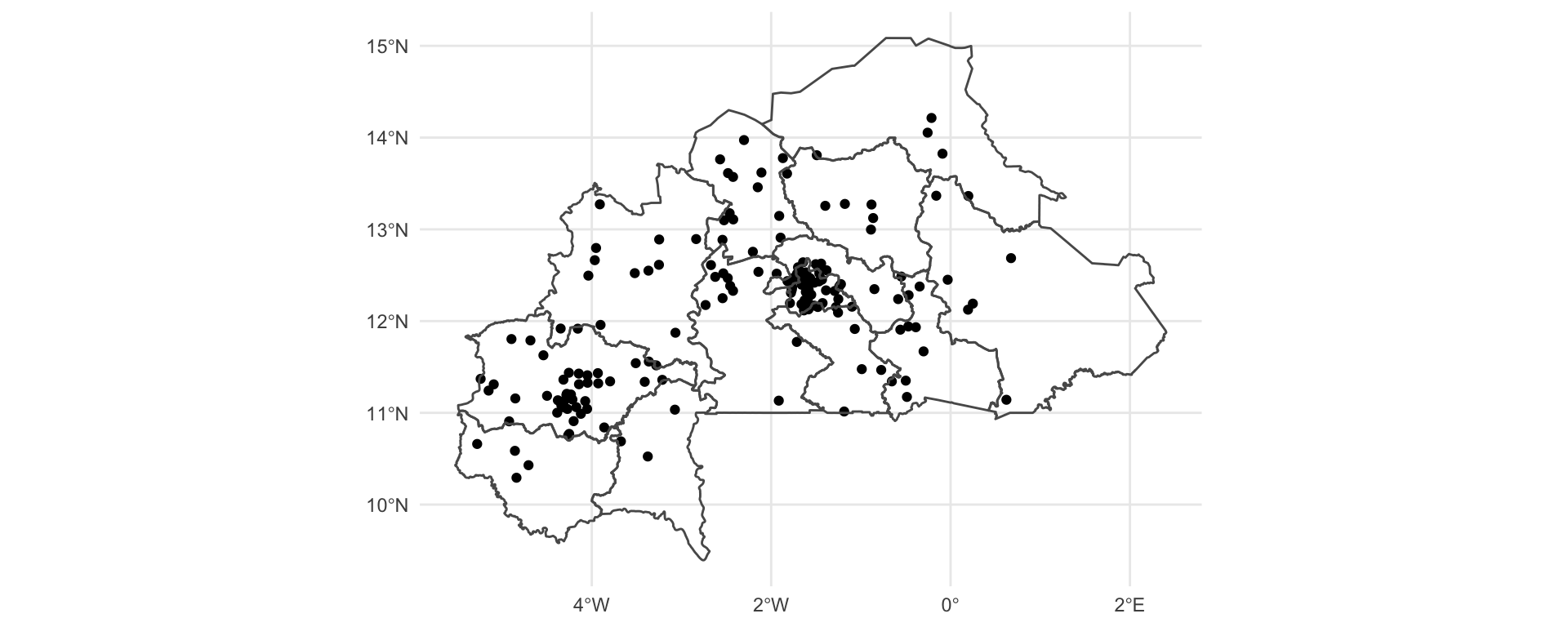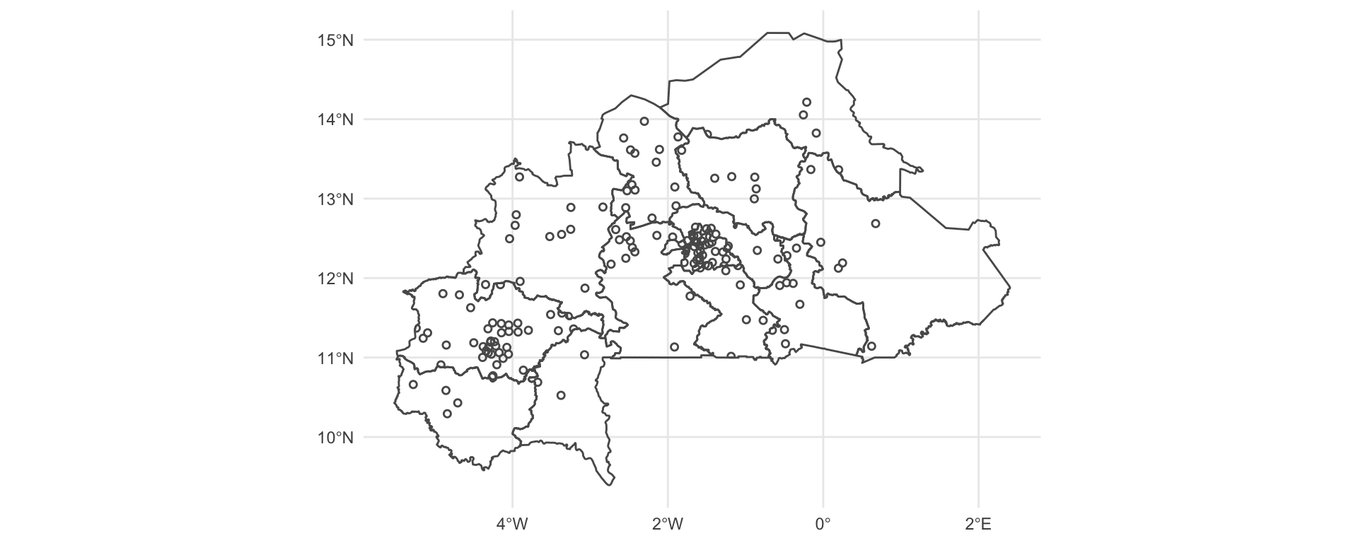 We need a supplementary shape file to see where each point lies on a map of Burkina Faso.